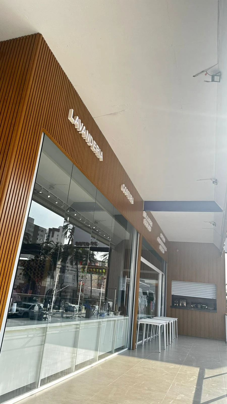 Esse tipo de fachada amplia a visibilidade do estabelecimento tanto durante o dia quanto à noite.